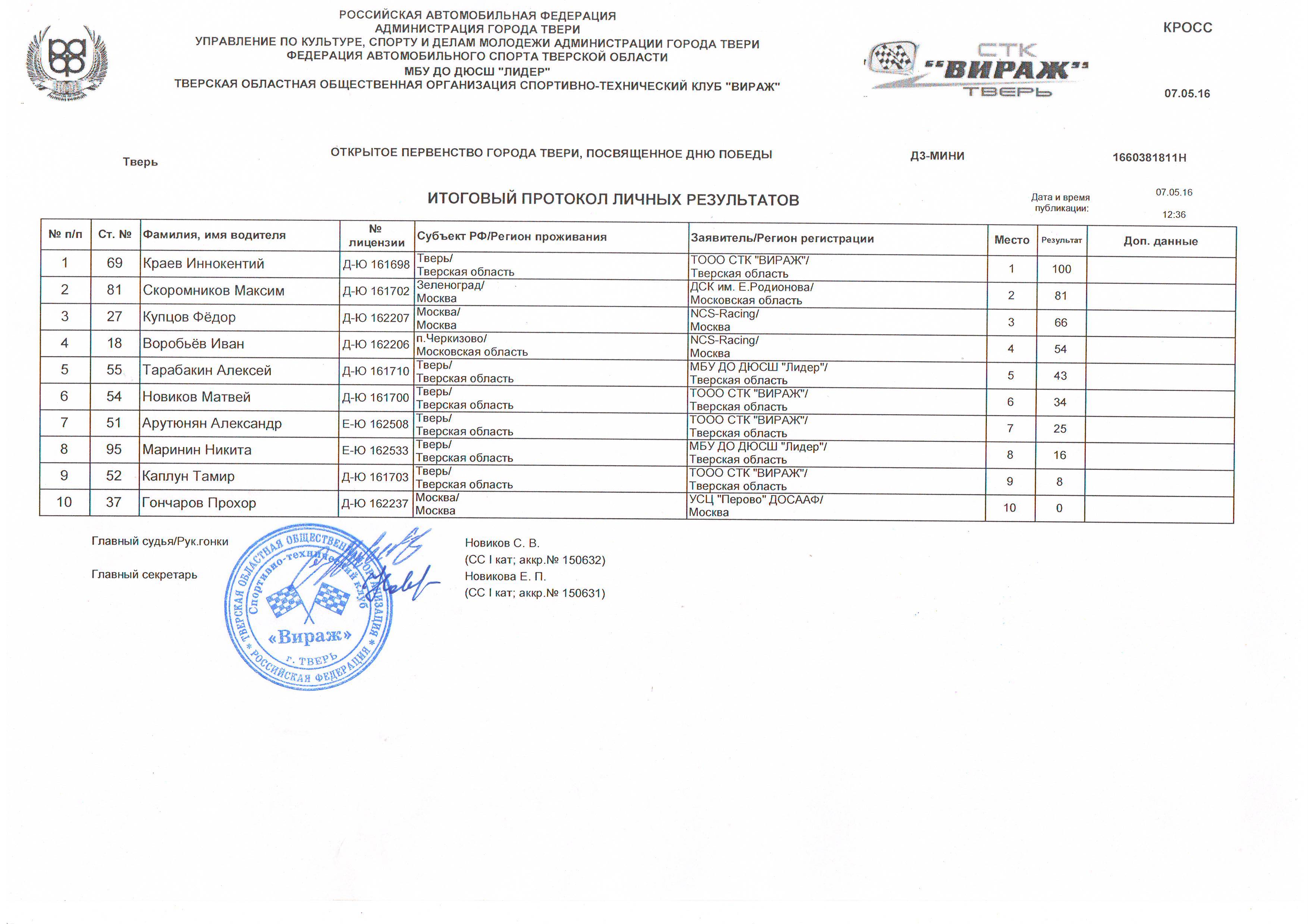 Итоговый протокол Д3-мини 07.05.2016