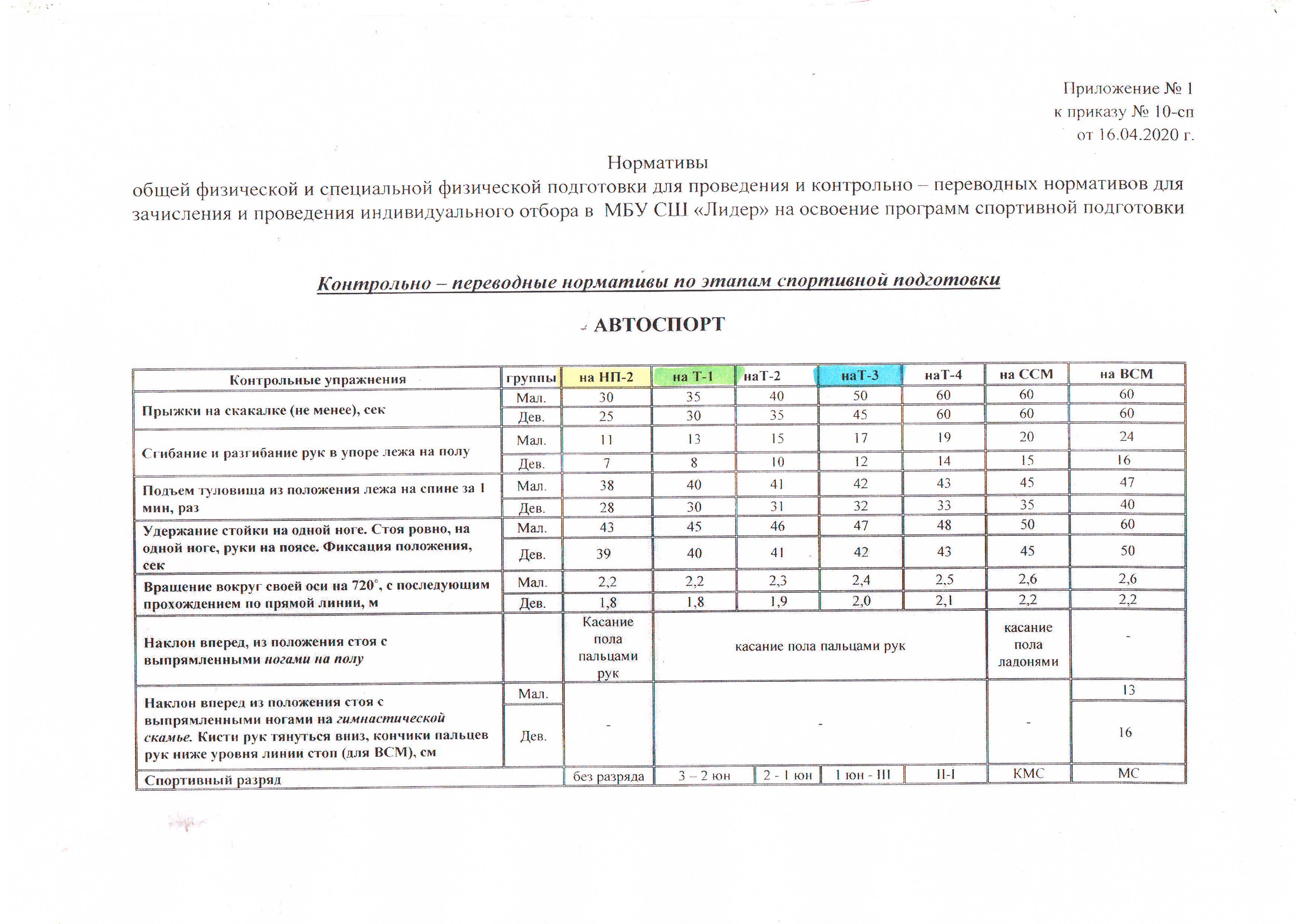КОНТРОЛЬНО-ПЕРЕВОДНЫЕ НОРМАТИВЫ ПО ЭТАПАМ СПОРТИВНОЙ ПОДГОТОВКИ "АВТОСПОРТ"