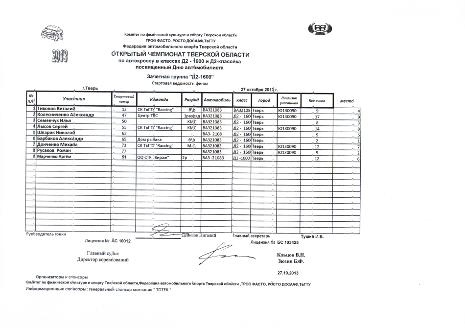 26 октября 2013 года ИТОГИ НАШИ РЕЗУЛЬТАТЫ 27 октября 2013 года на Открытом Чемпионате Тверской области по автокроссу